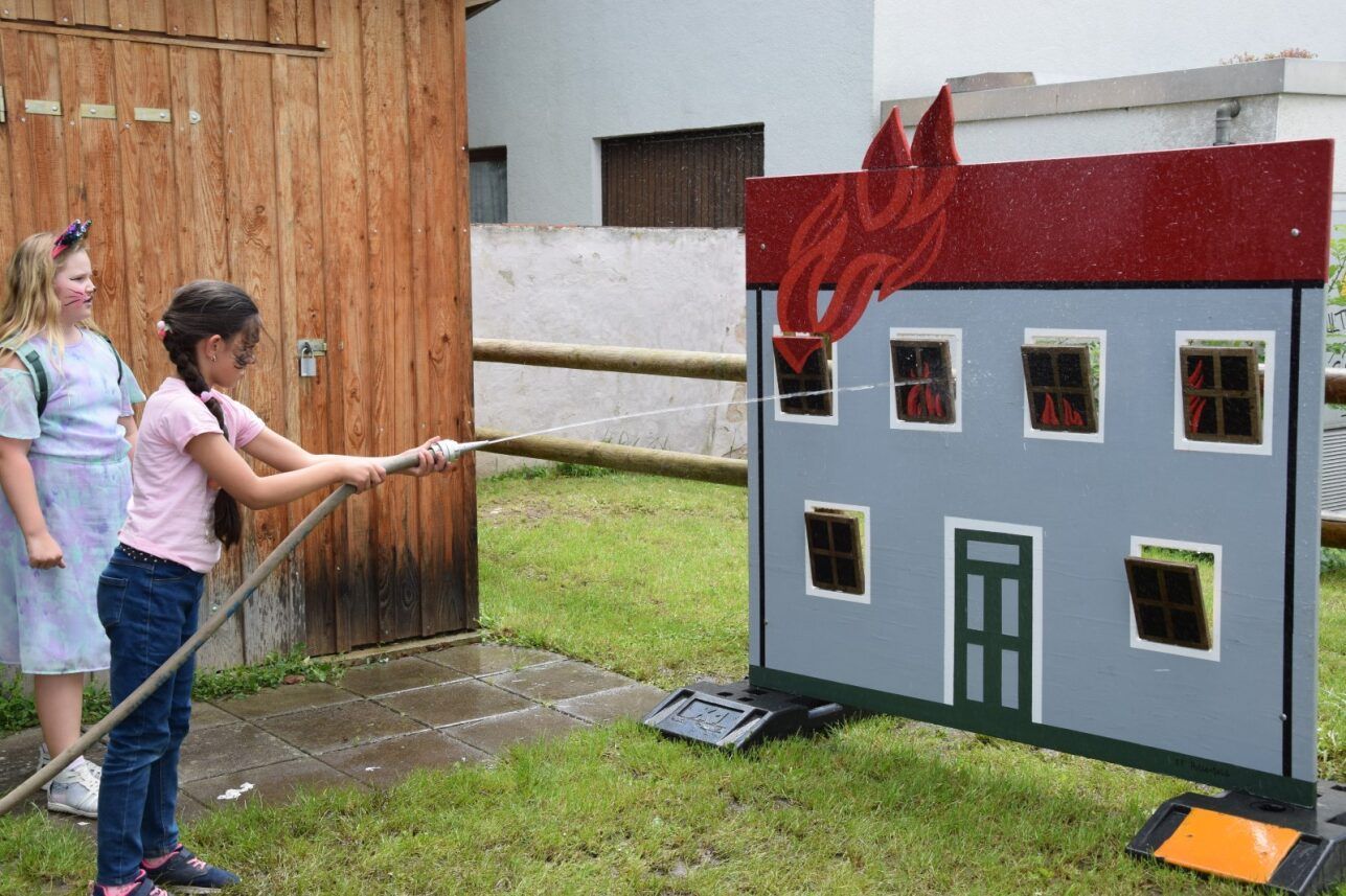 Die Kinder erfuhren Interessantes über das Verbrennungsdreieck, den Ablauf eines Feuerwehreinsatzes und lernten, wie man einen Notruf korrekt absetzt. Zum Abschluss wurde ein simulierter Fettbrand im Pausenhof gelöscht.
