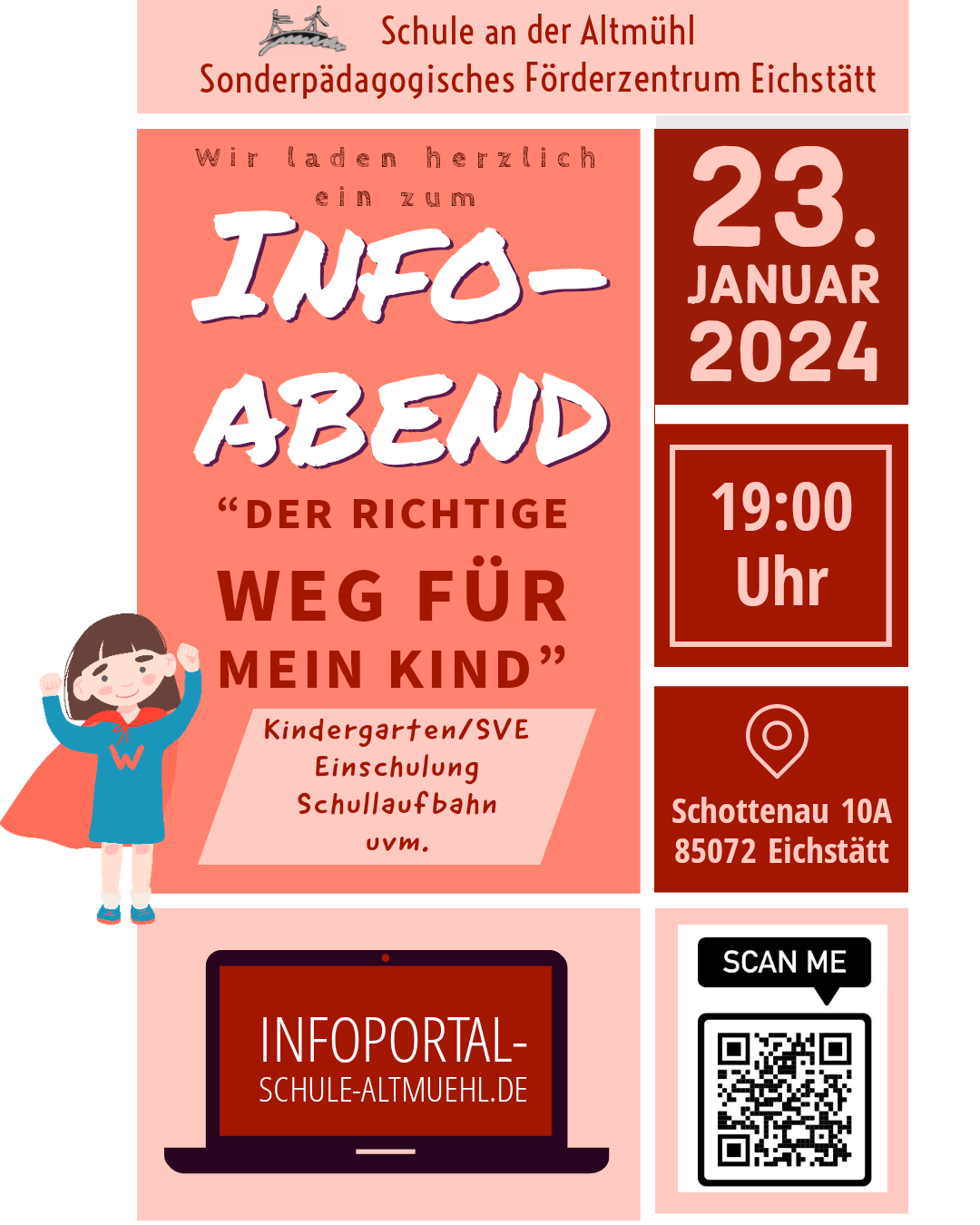 Unsere Schule an der Altmühl ist ein Sonderpädagogisches Förderzentrum. Das heißt, wir sind spezialisiert auf die Förderschwerpunkte Lernen, Sprache und emotional-soziale Entwicklung. Ab dem Schuljahr 2025/26 werden auch Schülerinnen und Schüler mit dem Förderschwerpunkt geistige Entwicklung in der ersten Klasse beschult. Neben der Schule in Eichstätt gibt es noch eine Außenstelle in Beilngries.